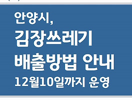 | 안양시, 김장쓰레기 배출방법 안내 / 12월10일까지 운영 (0) | 2019.11.02 |