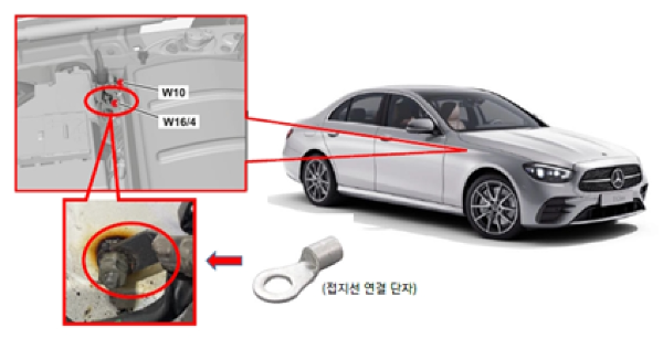 E 350 4MATIC 등 8개 차종 27,406대에서 48V 배터리 접지부의 연결볼트 고정 불량이 발견되어 4월 5일(금)부터 자발적 리콜을 실시한다.