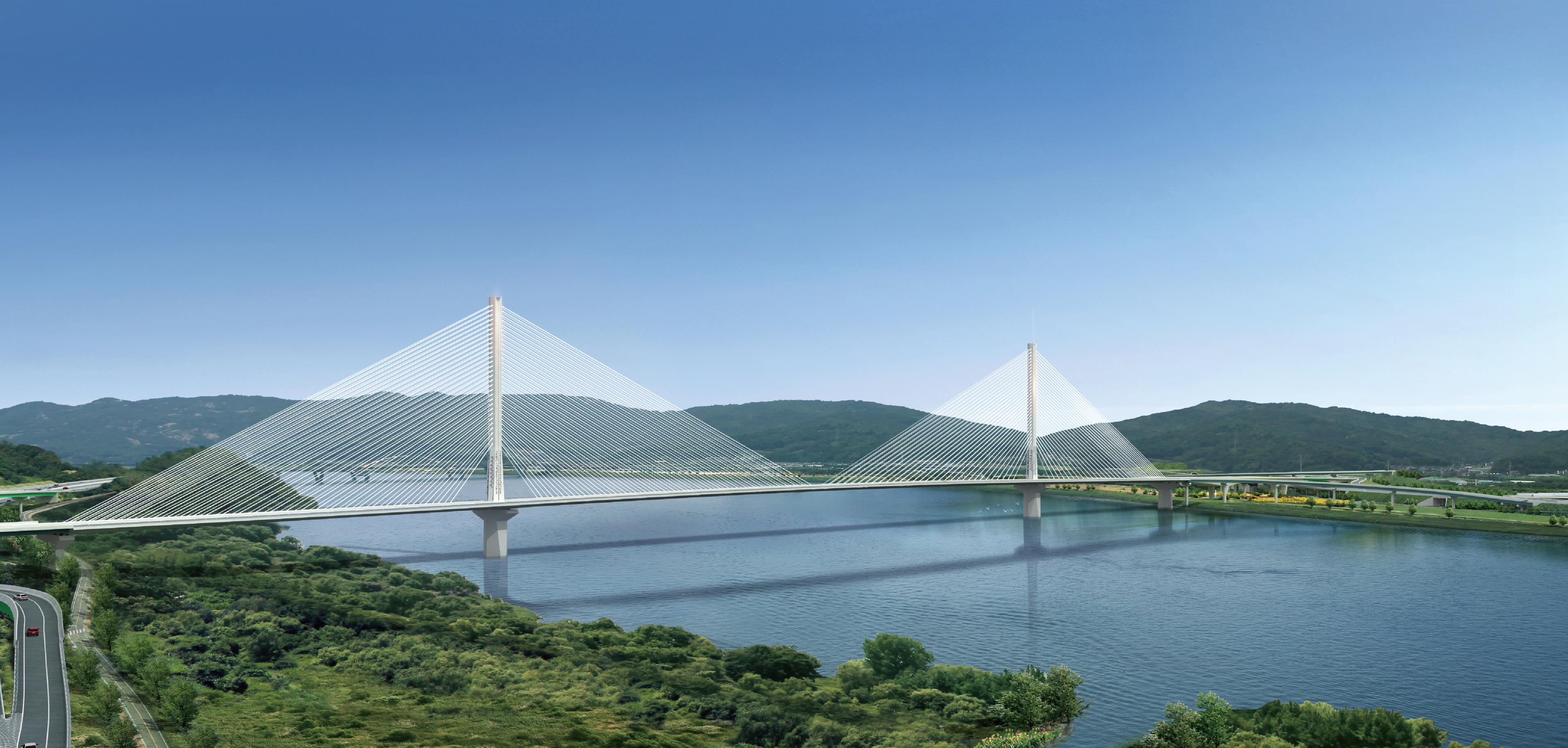 * 교량의 교각과 교각 사이의 최대거리를 말하며, 콘크리트 형식의 사장교로는 세계 최장