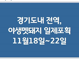 | 경기도내 전역, ‘야생멧돼지 일제포획’ 실시 / 11월18일~22일 (0) | 2019.11.17 |