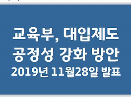 | 대입제도 공정성 강화 방안 / 2019년 11월28일 발표 (0) | 2019.11.28 |